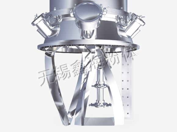 在行星架上有一刮壁刀隨行星架轉(zhuǎn)動,緊貼桶壁不斷的刮拭,桶壁經(jīng)大型立車精加工后,再經(jīng)大型自動拋光機拋光,確保行星架上的活動刮刀在旋轉(zhuǎn)時把桶壁的物料完全刮掉,使桶壁無滯留料,提高混合效果。